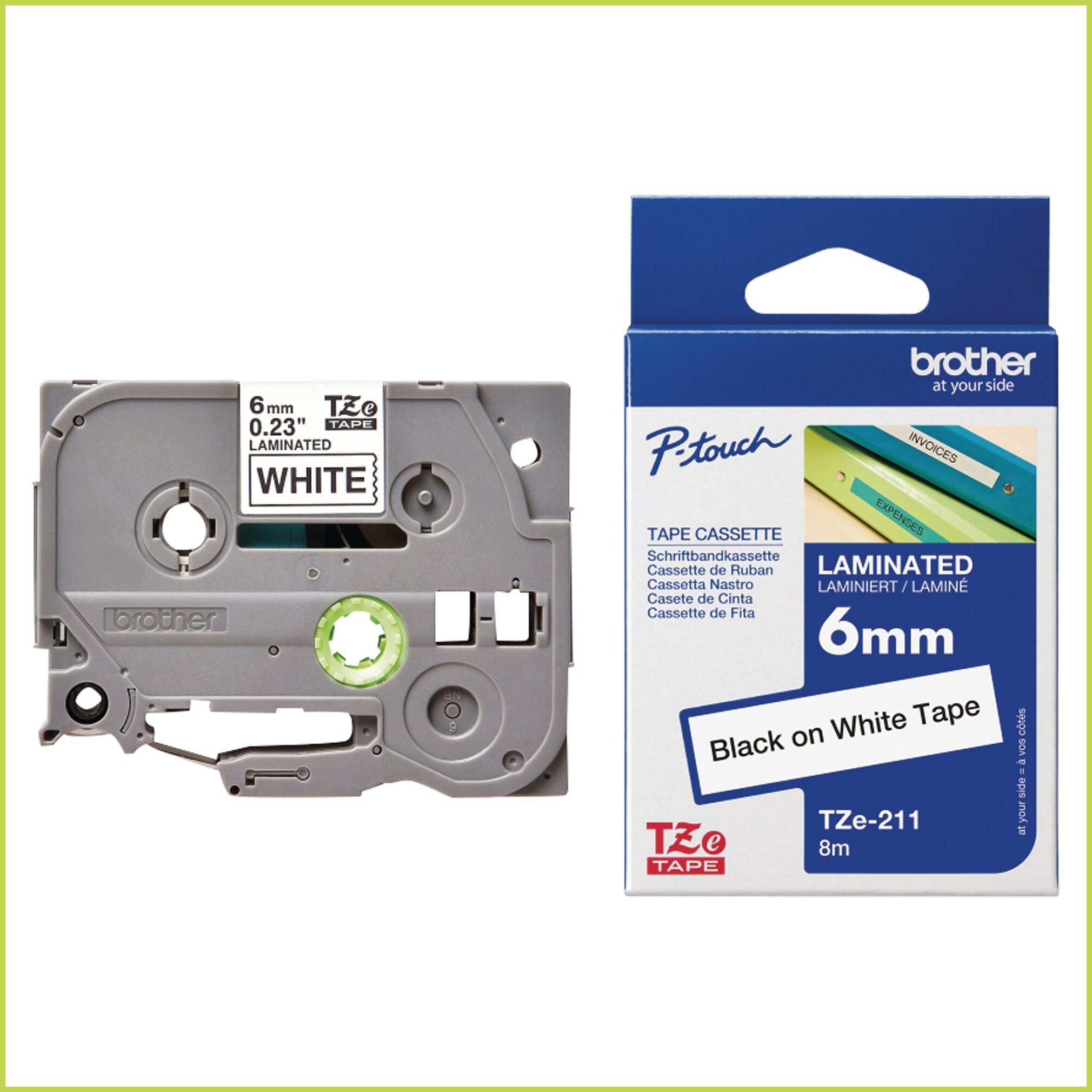 Korkealaatuinen tarranauha brother p-touch -tarratulostimiin. laminoidussa tarranauhassa on musta teksti valkoisella pohjalla. sekä sisä- että ulkokäyttöön sopivat tarrat kestävät auringonvaloa, pakkasta ja vettä. mitat: 6 mm x 8 m. Tarranauhan minimitilaus 1. Tukkupakkauksessa 20.Tarranauha Brother tze-211 6mm musta/valkoinen on korkeatasoinen tarttuva teippi tarratulostimeen. Sen toimituksen kesto on verkkokaupasta tilattuna 1-2 päivää.